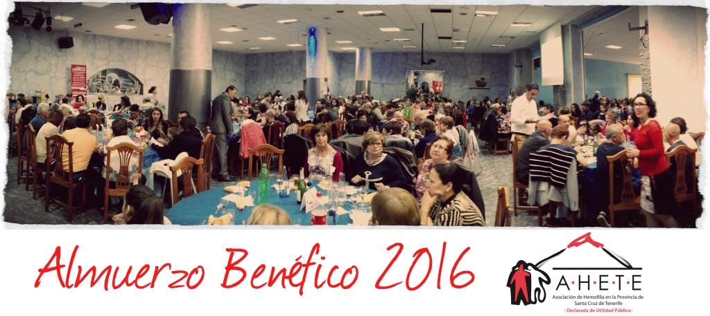 Un año más, el Almuerzo Benéfico de AHETE ha sido un gran éxito. Casi 250 personas han asistido al evento en el cual hemos contado un año más con la presencia de la Consejera Insular del Área de Gobierno Abierto, Acción Social y Atención Ciudadana Doña Cristina Valido, siempre sensibilizada con el colectivo de Hemofilia en Santa Cruz de Tenerife. Así mismo hemos contado con la actuación de Luis Deseda, que no ha dudado en colaborar amenizando la tarde con su música.