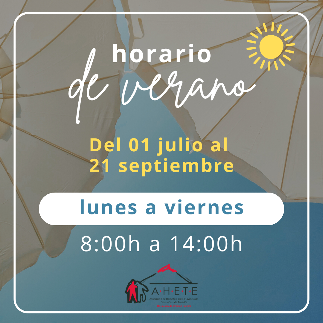 Desde el mes de agosto, informándoles que AHETE no cierra en verano. Hasta el 21 de septiembre, tendremos horario de verano de lunes a viernes: 08:00h a 14:00h