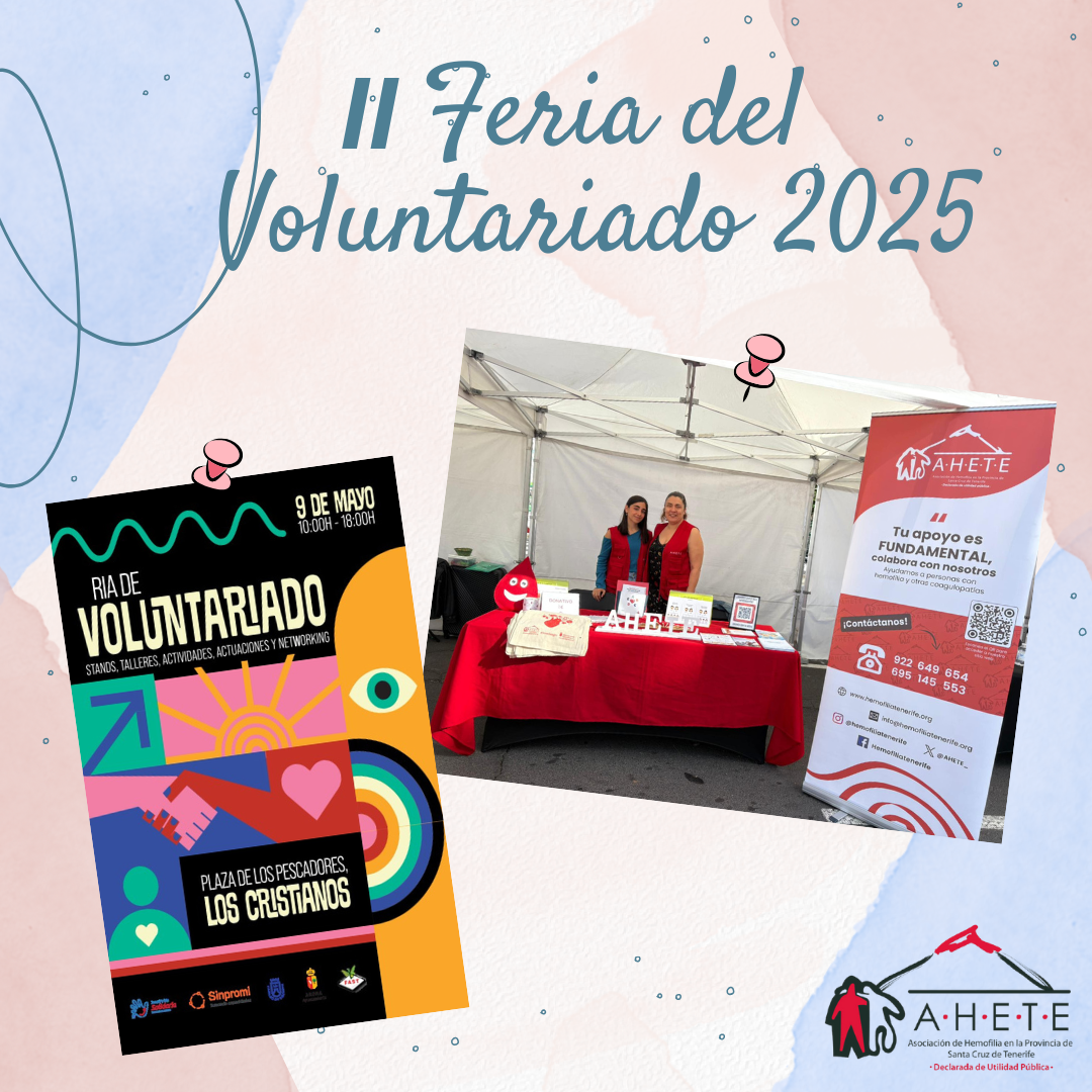 El viernes 09 de mayo, AHETE estuvo presente con un stand informativo en la II Feria de Voluntariado 2025 organizada por Tenerife Isla Solidaria, Sinpromi y Cabildo Insular de Tenerife. Este año tuvo se celebró esta jornada en el sur de la isla de Tenerife, concretamente en el municipio de Arona, desarrollando las actividades en