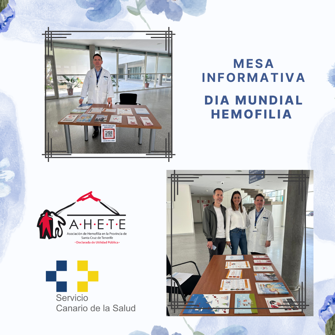 El jueves 24 de abril, el servicio de Hematología y Hemoterapia del Hospital Ntra. Sra. de Guadalupe (La Gomera), ha colocado un stand informativo para dar información sobre la Hemofilia y las Coagulopatías Congénitas por nuestro Día Mundial (17 abril).