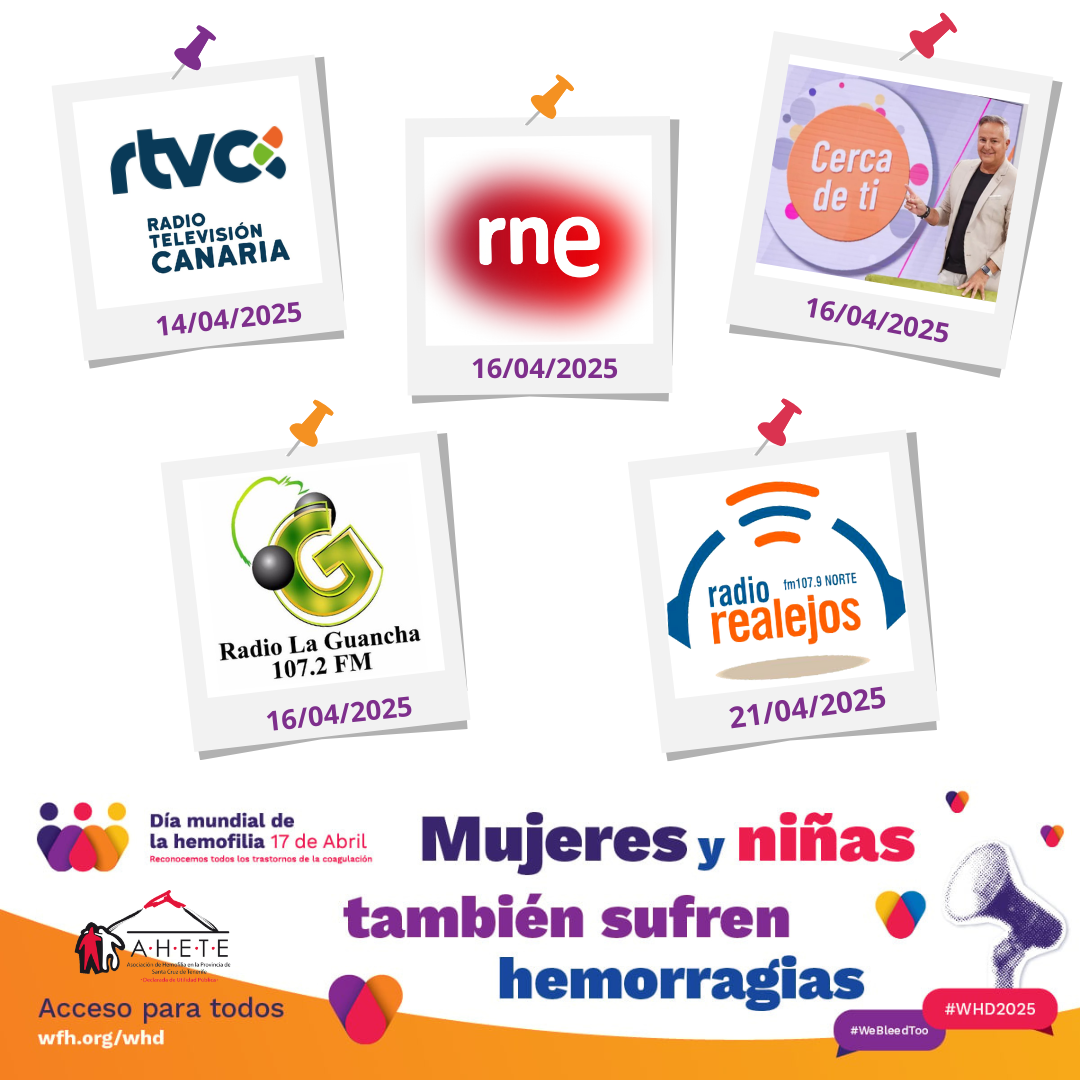Desde AHETE, queremos agradecer a todos los medios de comunicación su apoyo y colaboración para conmemorar el Día Mundial de la Hemofilia. Gracias por darnos voz y ayudarnos a visibilizar y sensibilizar las Coagulopatías.