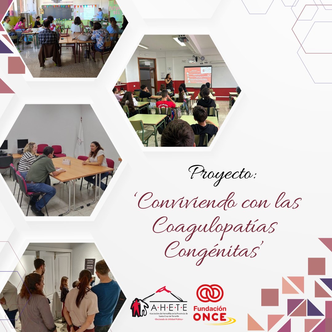 Desde Ahete continuamos ejecutando nuestro proyecto “Conviviendo con las Coagulopatías Congénitas”, el cual se encuentra financiado por la Fundación ONCE, a quienes agradecemos un año más su apoyo. Este proyecto incluye dos líneas de actuación prioritarias para la supresión de barreras psicosociales y favorecer de manera trasversal su inclusión, a través de: 1) Línea de